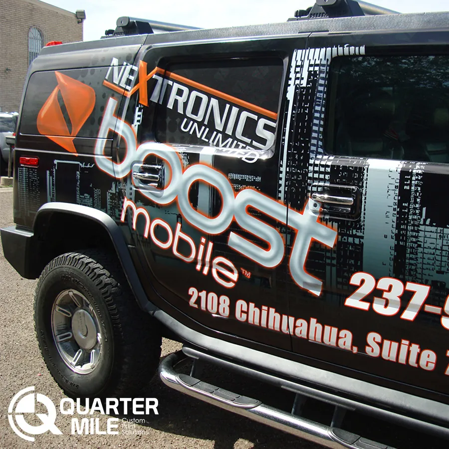 Quartermile Laredo offers a full range of services, from a complete full car vinyl wrap to a strategic partial car wrap or custom graphics like a fleet decal or custom trailer decals.
